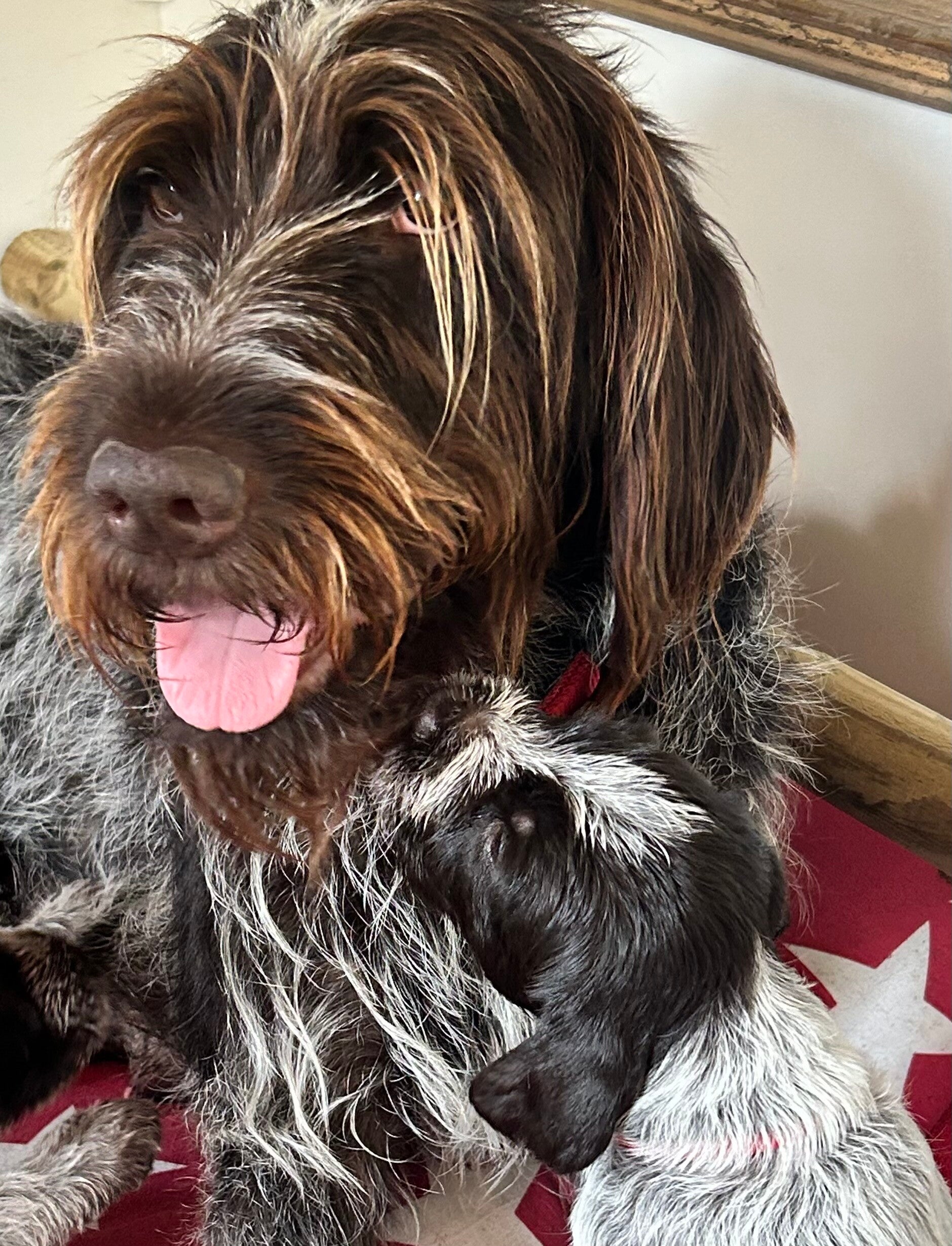 Es ist soweit! seid 5 Uhr heute morgen kommen die Welpen, bisher sind es 3 Rüden und 6 Hündinnen , aber es geht noch weiter.18:00 Uhr es ist geschafft. 3 Rüden und 7 Hündinnen !